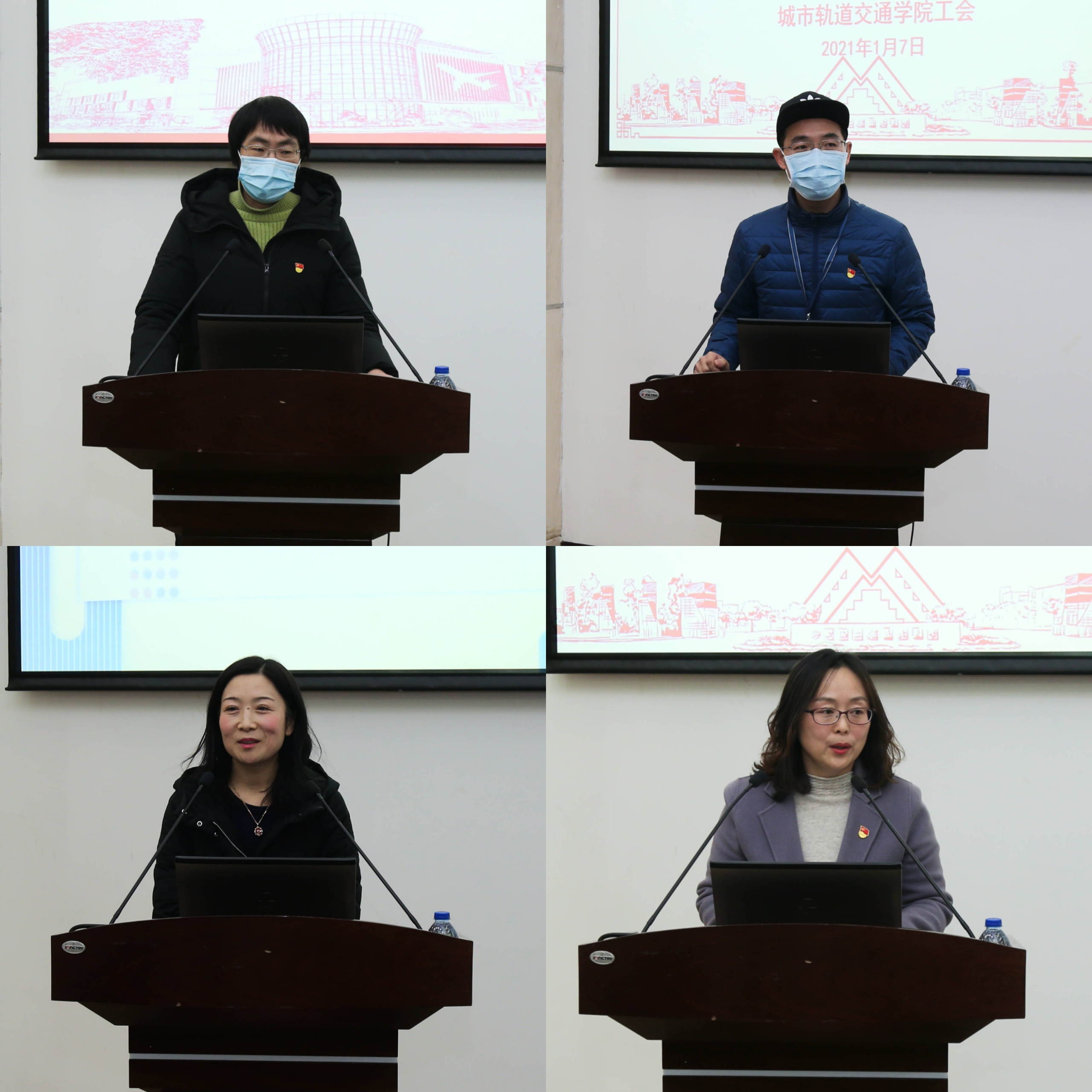 校工会兼职副主席、城市轨道交通学院党委书记柴晓冬主持工会工作总结交流会。校工会委员会委员、航空运输学院工会主席吴菁,城市轨道交通学院工会主席李健,校工会委员会常委、马克思主义学院工会主席杨晓华代表部门工会分别交流发言,展现出了丰硕的基层工作成果,为今后更好地做好基层工会工作、服务学校发展启迪了智慧、凝聚了力量。之后,校工会副主席、妇工委常务副主任、女工委主任李霞从七个方面全面回顾了2020年学校工会工作。