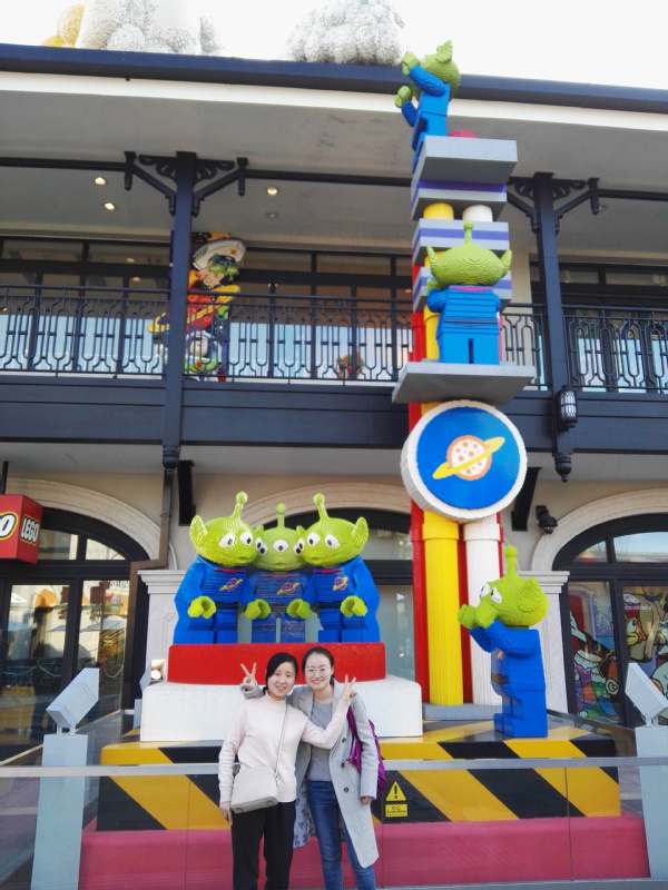 迪士尼小镇份为五个区域:小镇市集、百食香街、百老汇大道、百老汇广场和迪士尼小镇湖畔。“少女们”各自奔向自己喜欢的区域。迪士尼的世界商店,各种纪念品琳琅满目,采购些喜欢的小挂件,带回去个卡通杯子,难得的购物经历。小朋友的乐高也玩一玩,耗时一个月的构造,几万件的小零件,代表人类的构思和耐心,让我们想起实验的多少次的失败,多少次的尝试,得到最终成果的喜