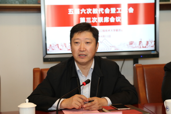 4月11日上午,五届六次教代会暨工代会第三次联席会议在行政楼406会议室顺利召开,审议通过了《上海工程技术大学关于学院岗位业绩津贴经费切块核拨办法》。校党委书记李江,校党委副书记、校长夏建国,校党委副书记史健勇、鲁嘉华,副校长姚秀平,各主席团成员、教代会代表团(组)长,民主管理委员会正副主任、校工会委员会委员、相关职能部门负责人共40人参加本次会议。会议由校党委副书记、工会主席史健勇主持。
