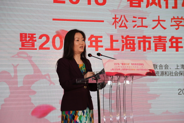 松江区政府副区长龙婉丽发表讲话。她感谢主办方和用人企业对此次活动的大力支持,指出松江区委、区政府历来高度重视就业和再就业工作,此次招聘会有400多家企业向广大学生提供3200个岗位,充分体现了群团组织作用的发挥,她祝愿广大青年学生都能在此次招聘会中找到建功立业、实现理想的天地。