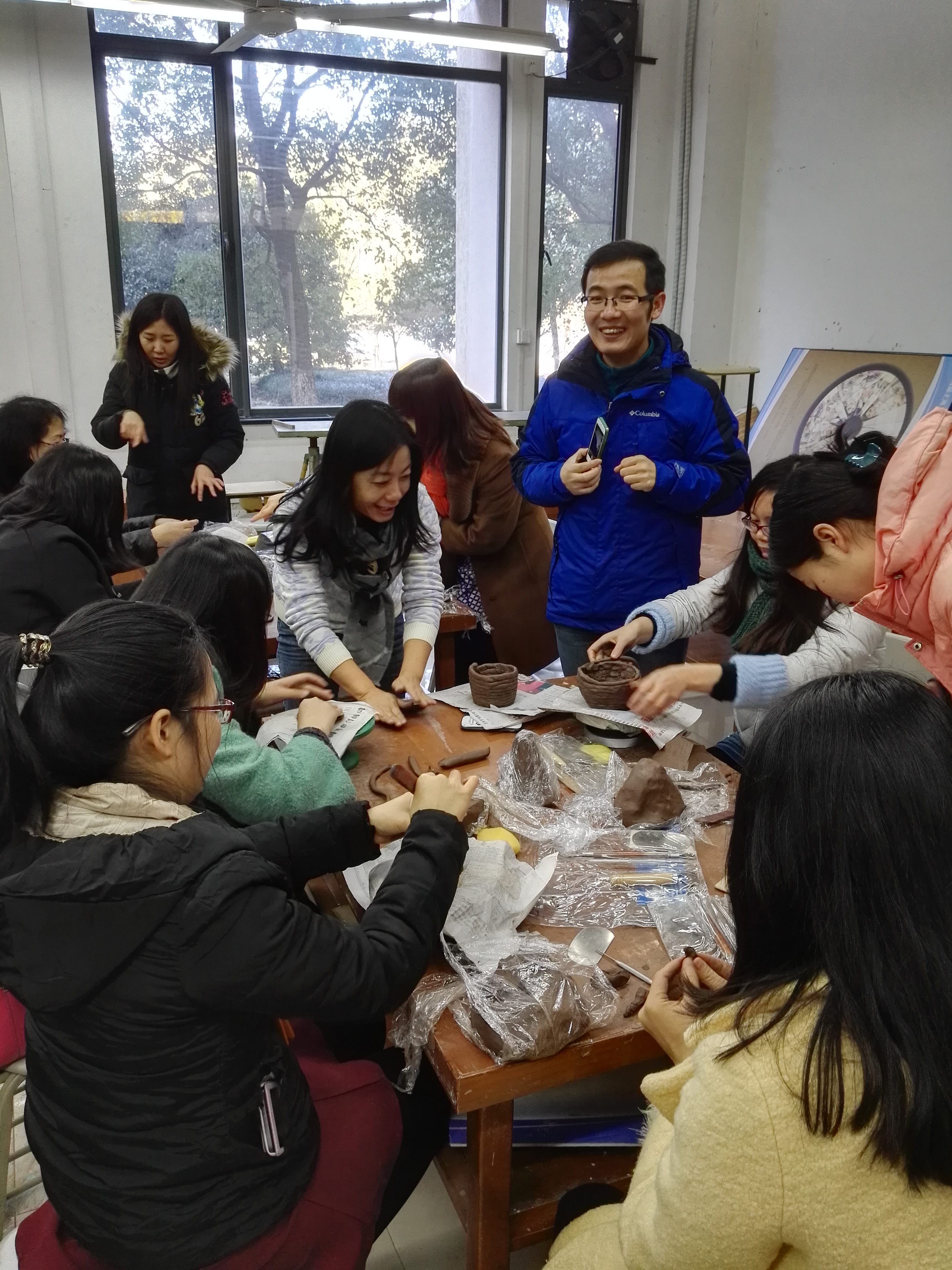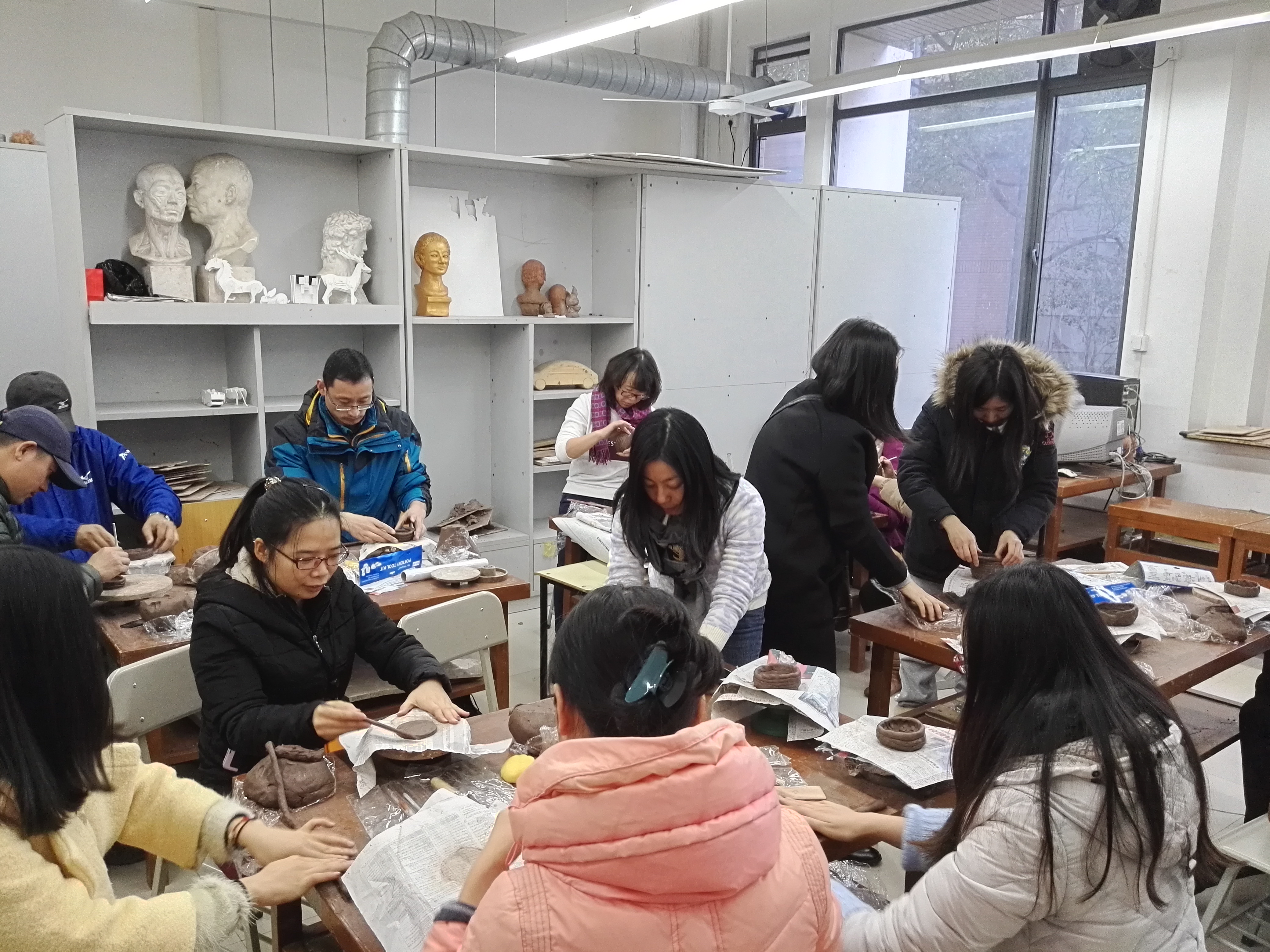 11月27日下午,艺术设计学院女工委在艺术楼c108陶艺工作室成功举办“乐陶陶”陶艺制作活动。活动由艺术设计学院工会主席朱翔老师主持,陶艺专家杨媛老师进行技术指导,来自各学院、部门的40多位老师参加了活动,并亲自动手,制作了独具个人特色的陶艺作品。