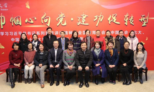 12月14日下午,由校工会主办、化学化工学院承办的巾帼心向党·建功促转型——学习习近平总书记系列重要讲话精神、全国教育大会、中国工会十七大、中国妇女十二大精神主题座谈会暨第六届女教师创新发展论坛在图文信息中心第三报告厅隆重举行。校党委副书记、工会主席史健勇,上海市教育系统妇工委副主任、上海市教育工会女工部部长彭超波,校工会常务副主席柳如荣、华东理工大学工会副主席、妇委会常务副主任王莉、中国妇女十二大代表、上海大学无人艇工程研究院院长彭艳、华东政法大学妇工委副主任黄岳峥、上海政法学院工会干部郭佳眉、上海农林职业技术学院女工委负责人张媛等部分高校妇女干部出席会议,相关职能部处负责人、部分学院党政负责人、校女工委(副)主任、部门工会主席和女工委员、教师代表等80余人参加会议。会议由化学化工学院党委书记刘宇虹主持。