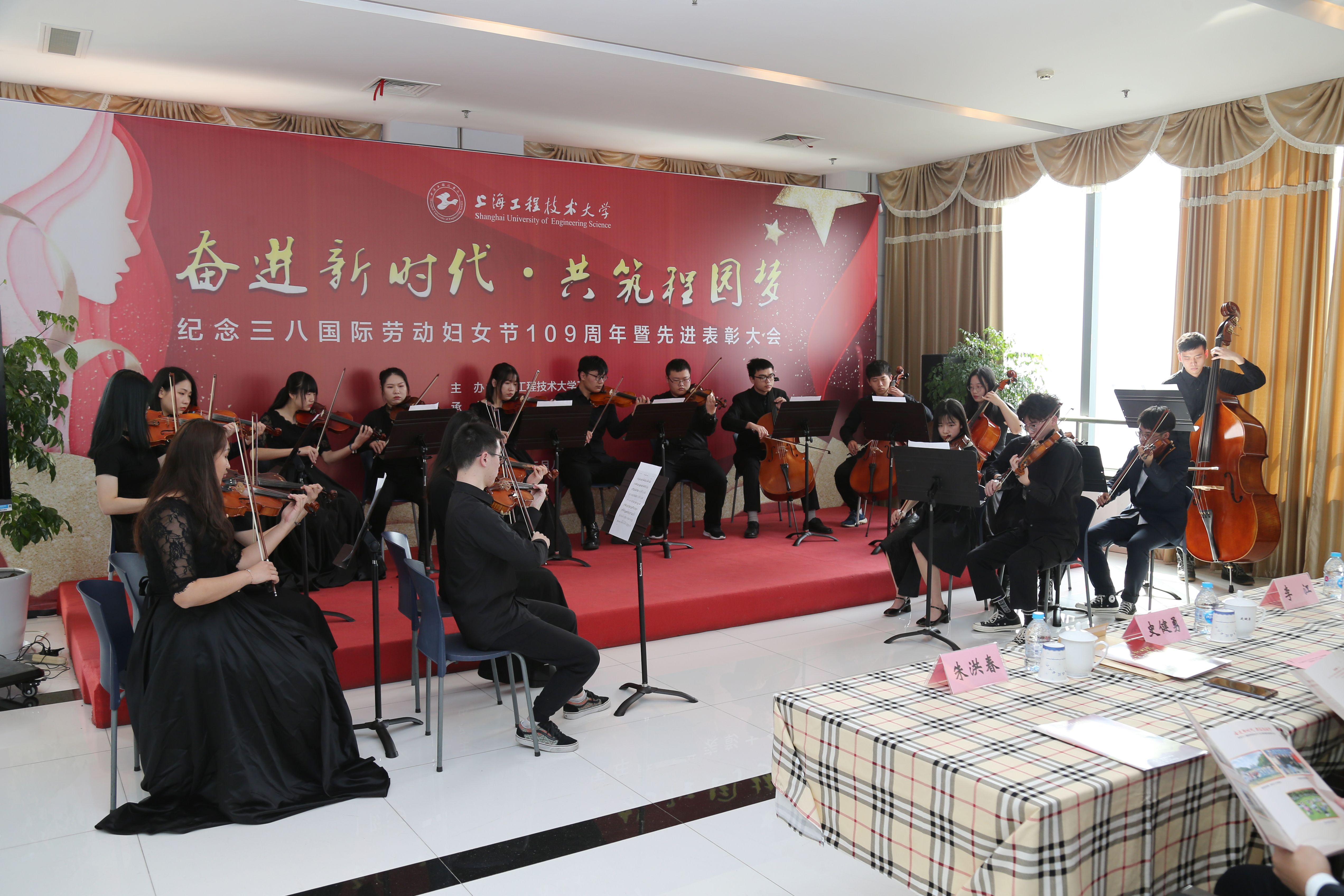 此次表彰会的精彩节目成为一大亮点。学生交响乐团精彩演绎经典曲目《闻香识女人》;管理学院、服装学院师生现场配乐原创现代诗《织梦程园》,鼓舞广大师生与时代同行,以梦想为楫,圆梦程园;《月圆花好》旗袍文化秀尽显海派知识女性风采;青年师生倾情演绎《我们都是追梦人》,唱响开拓奋进之歌,激励程园人努力奔跑争做新时代追梦人。