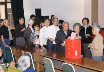 为进一步加强退休教工党总支的组织建设,退休教工党总支换届选举大会于5月20日9:15分两个会场(仙霞路校区教306室、新村路校区演讲厅)召开,校党委副书记、工会主席、退管会主任田信灿,工会常务副主席沈海庆,纪委副书记徐国祥、组织部副部长张可菡、退管办主任何志琴出席,共231名退休党员参加了大会。