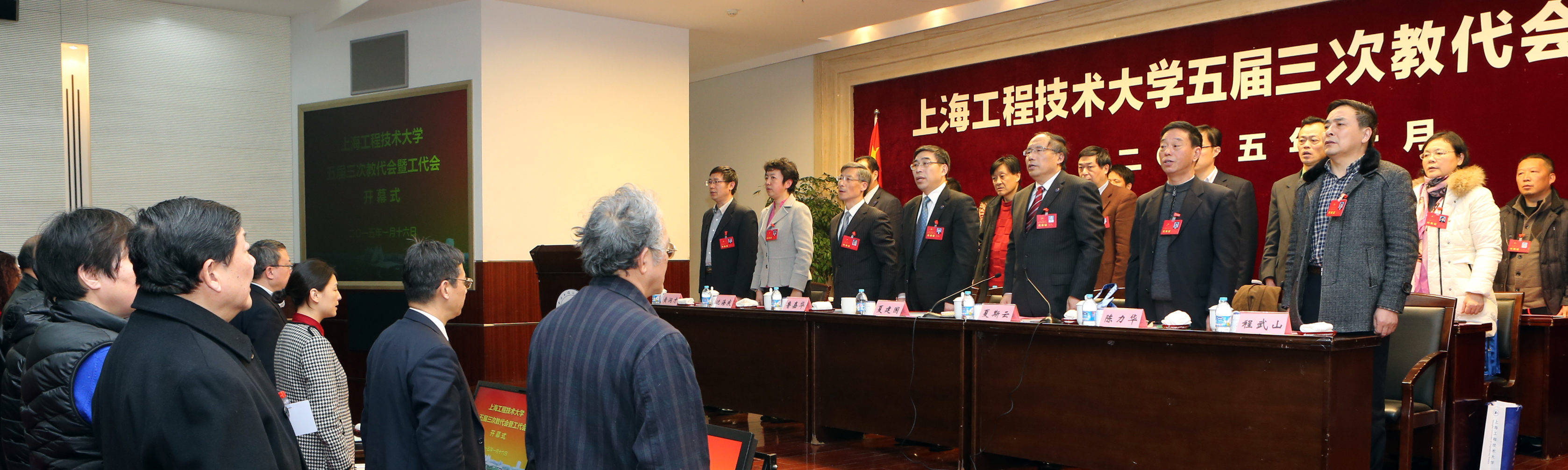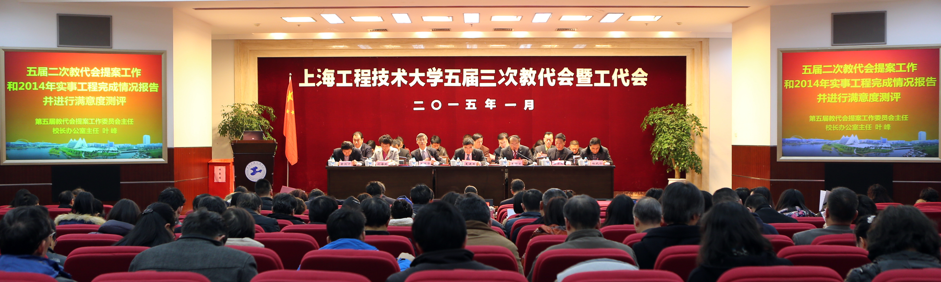 下午1:30,大会在嘹亮的国歌声中开幕。校长夏建国首先代表学校作了《2014年校长工作报告》。报告详细回顾了2014年学校的总体工作情况:学校坚持“三协同”办学特色发展,提升改革创新力度,学校内涵建设再创新成效;坚持质量为先,深化教育教学改革,学校办学水平与社会声誉显著提高;坚持以学生为本,推进思想政治教育与传统文化教育,营造健康向上的文化环境与氛围;抓好规划设计,建章立制,提升学校整体管理水平和能级;关注民生,为师生办实事,推动学校和谐发展。之后,夏校长围绕2015年行政工作重点,从工程教育综合改革、依法治校、创新学科建设模式、加大师资队伍建设力度、制定国际化发展战略、健全学生工作体系、加强资源的标准化管理等“八个方面”作了详尽细致的阐述。