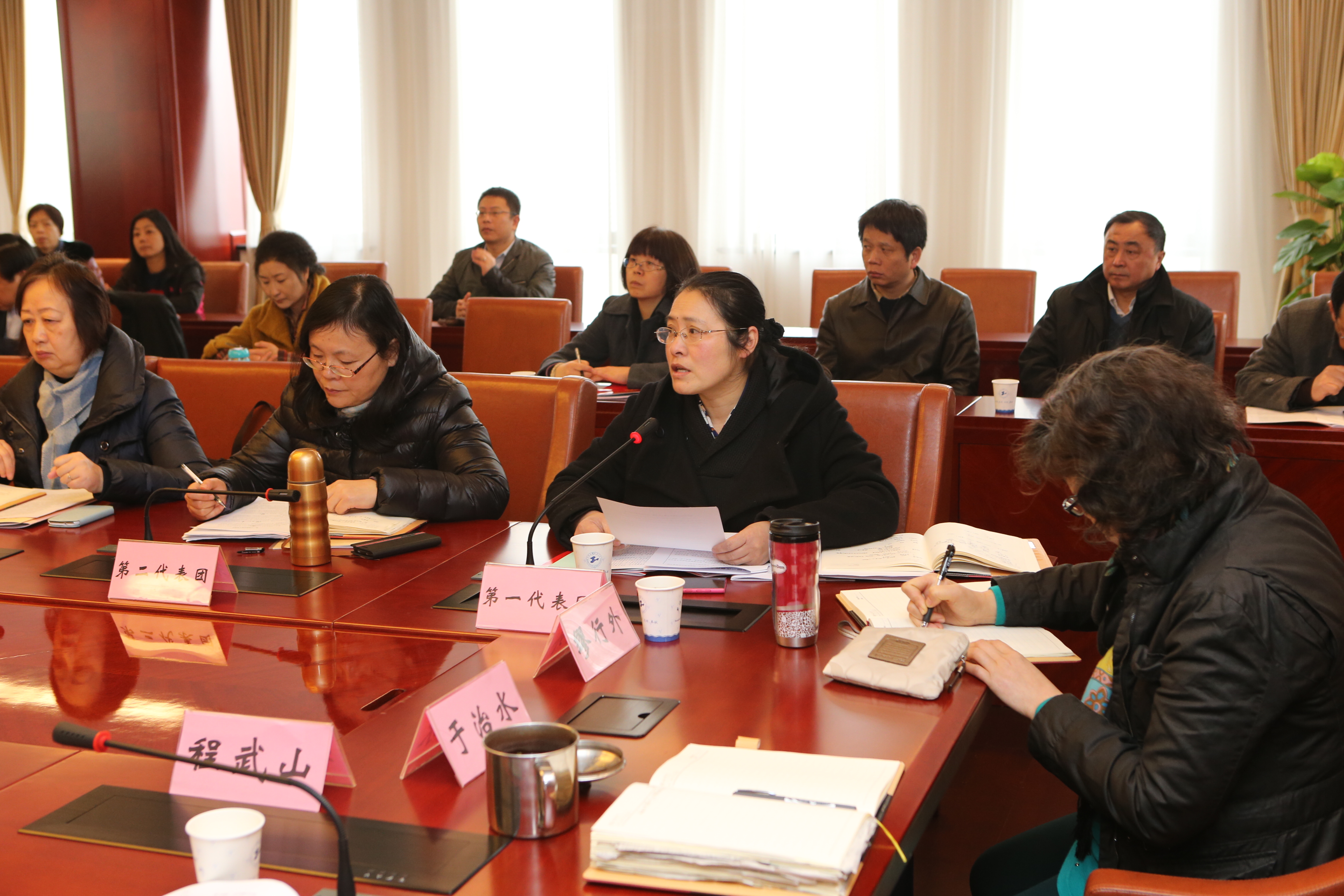 与会校领导边听边记,不时对代表团提出的问题作出正面回应。校长夏建国同志在听取了各代表团的发言后,从三个方面进行了总结:一是立足于党委的角度,重申意义和地位,指出教代会制度是高等教育的重要政治制度,也是学校民主管理的重要载体,党委要鼎力支持教代会,切实做到依法规范化运作。二是立足于行政的角度,指出行政工作要紧紧依靠教职工、自觉接受教职工的监督,时刻牢记教职工的希望、期待和愿景。三是立足于领导岗位,鼓舞代表们要对学校发展充满必胜的信心。面对学校师生的高度期待以及学校发展的艰巨任务,开拓校外资源有助于进一步激活校内资源,而利用好教代会这个平台则是激活校内资源的重要手段。
