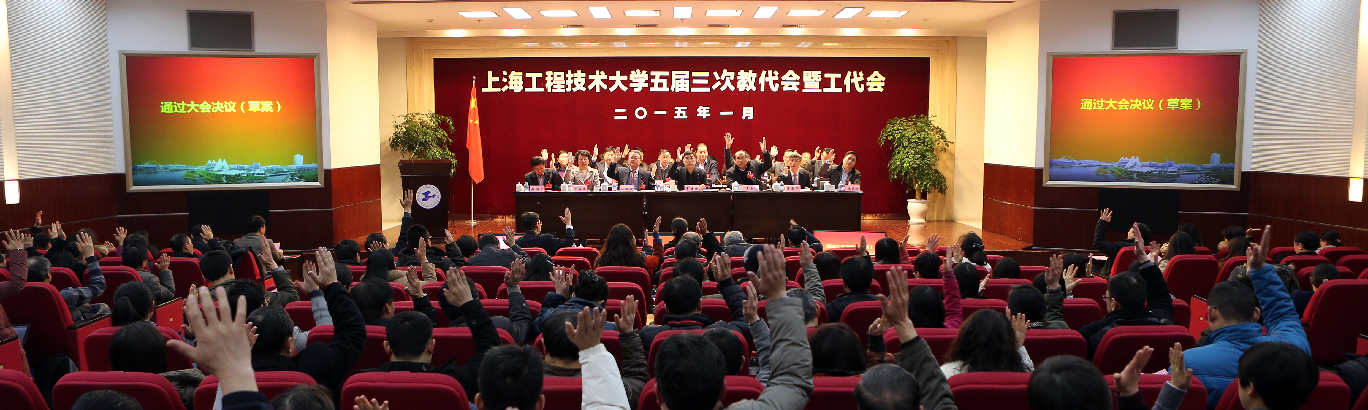 经表决,大会代表们一致通过了《上海工程技术大学第五届教代会暨工代会第三次会议决议》。大会号召,全校教职工要深入学习贯彻党的十八届三中、四中全会精神,在学校党委的坚强领导下,紧紧围绕创建现代化特色大学、提升“三协同”办学和人才培养模式、加强内涵建设等中心工作,进一步团结一致、凝心聚力、锐意进取,为加快推进 “现代化特色大学”建设进程、为早日实现“工程大、大成功”这一工程大人的共同梦想而努力奋斗。