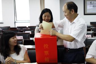 会议上半程,首先召开第五届委员会第六次全体委员会议,由组织部长林兰天宣读上海市教育工会《关于同意夏斯云同志为上海工程技术大学工会主席候选人的复函》,校工会根据中国工会章程和《工会法》,以无记名投票方式、分工会委员会委员、常委、工会主席三张选票举行了选举,校党委副书记夏斯云同志全票当选上海工程技术大学工会委员会委员、常委、工会主席。