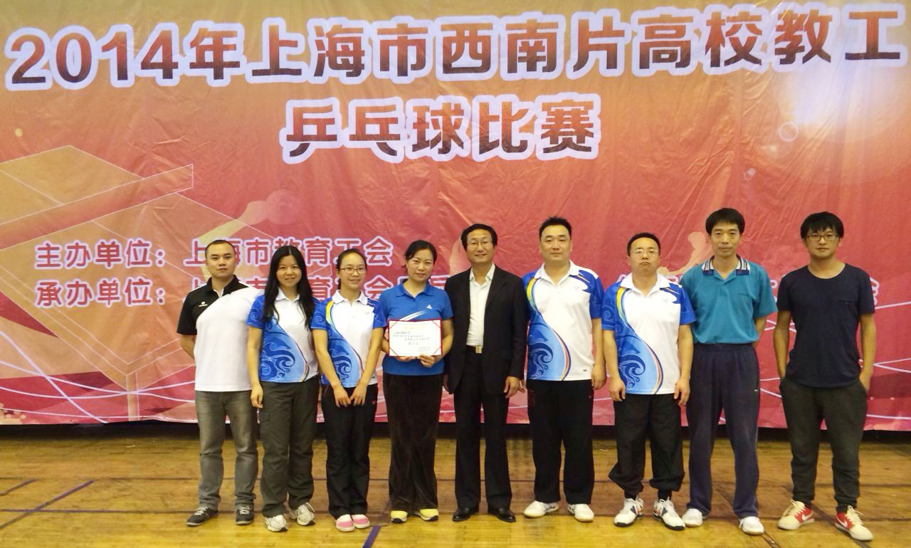 11月22日,由上海市教育工会主办,由上海市教育工会乒乓球协会、华东理工大学承办的2014年上海市西南片高校教工乒乓球比赛在华东理工大学徐汇校区体育馆二楼举行。