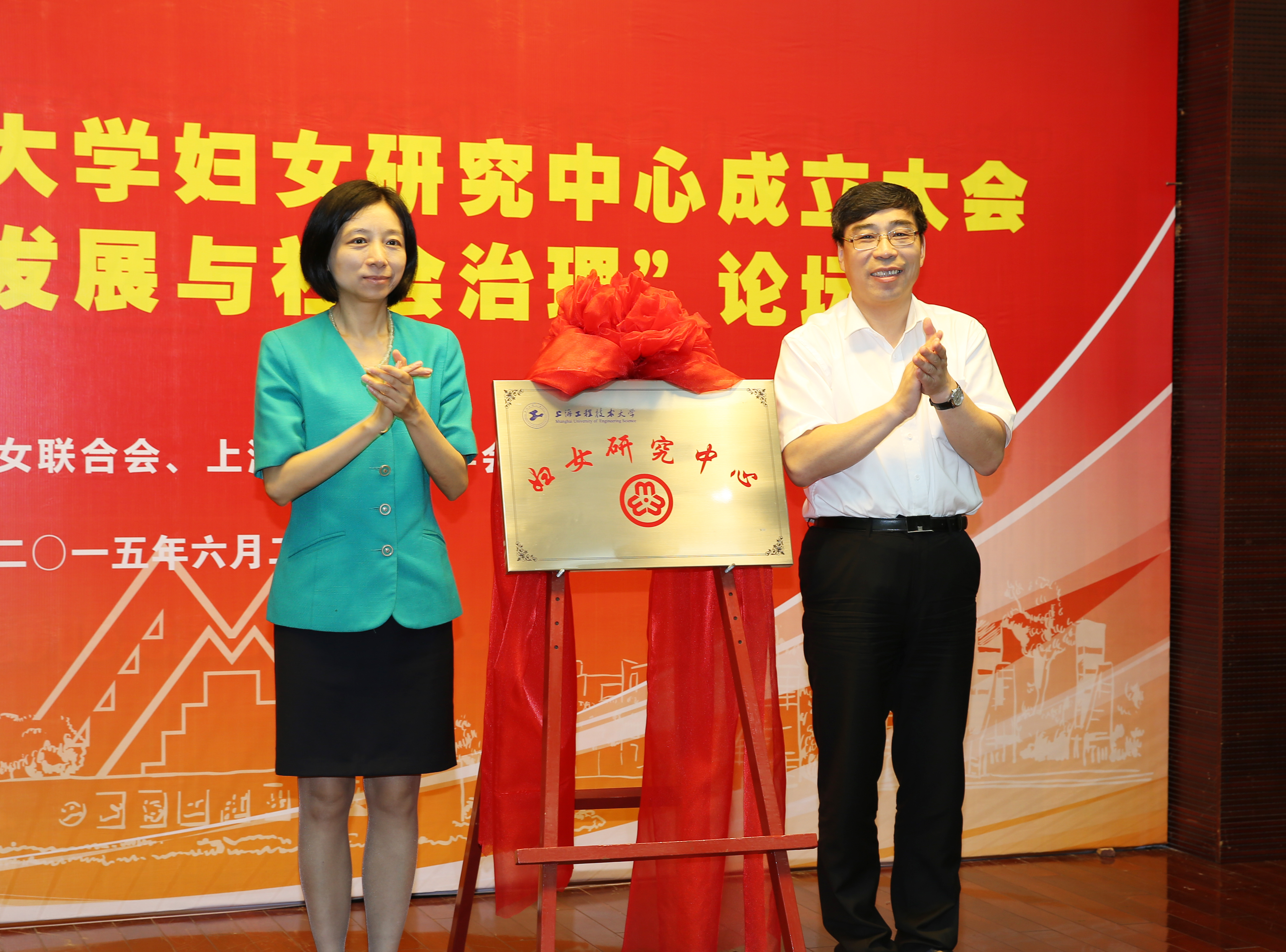 6月26日上午,上海工程技术大学妇女研究中心成立大会暨“女性发展与社会治理”论坛在我校图文信息中心第三报告厅隆重举行。上海市妇联主席、上海市妇女学学会会长徐枫和校长夏建国共同为我校“妇女研究中心”揭牌。