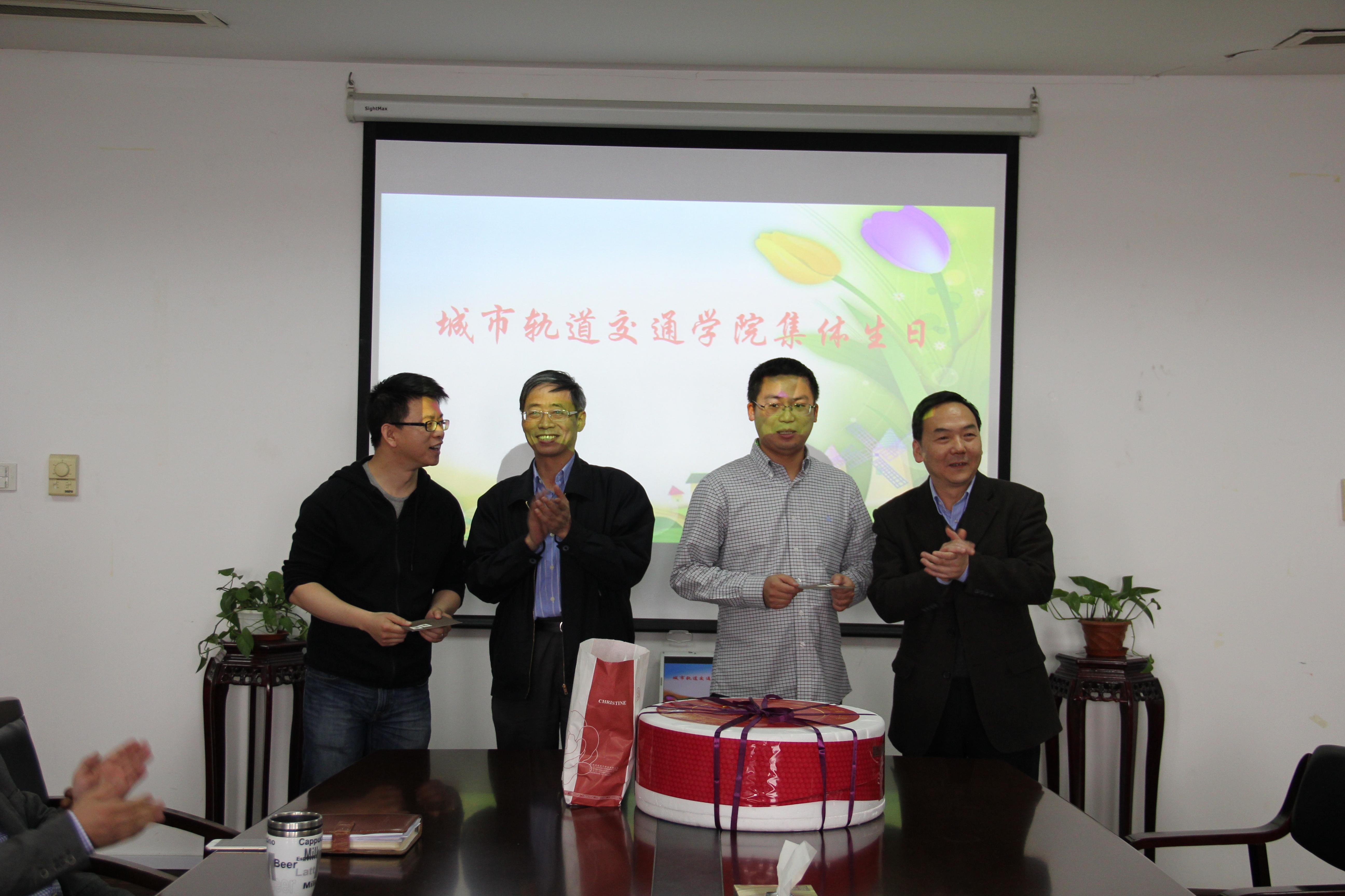 4月24日,城市轨道交通学院党总支书记刘牧众、院长柴晓冬与全体教职工齐聚一堂,为近期过生日的教职工举行了“集体生日会”。整个生日会形式生动活泼,内容丰富多彩,给大家带来了阵阵笑声、串串惊喜。