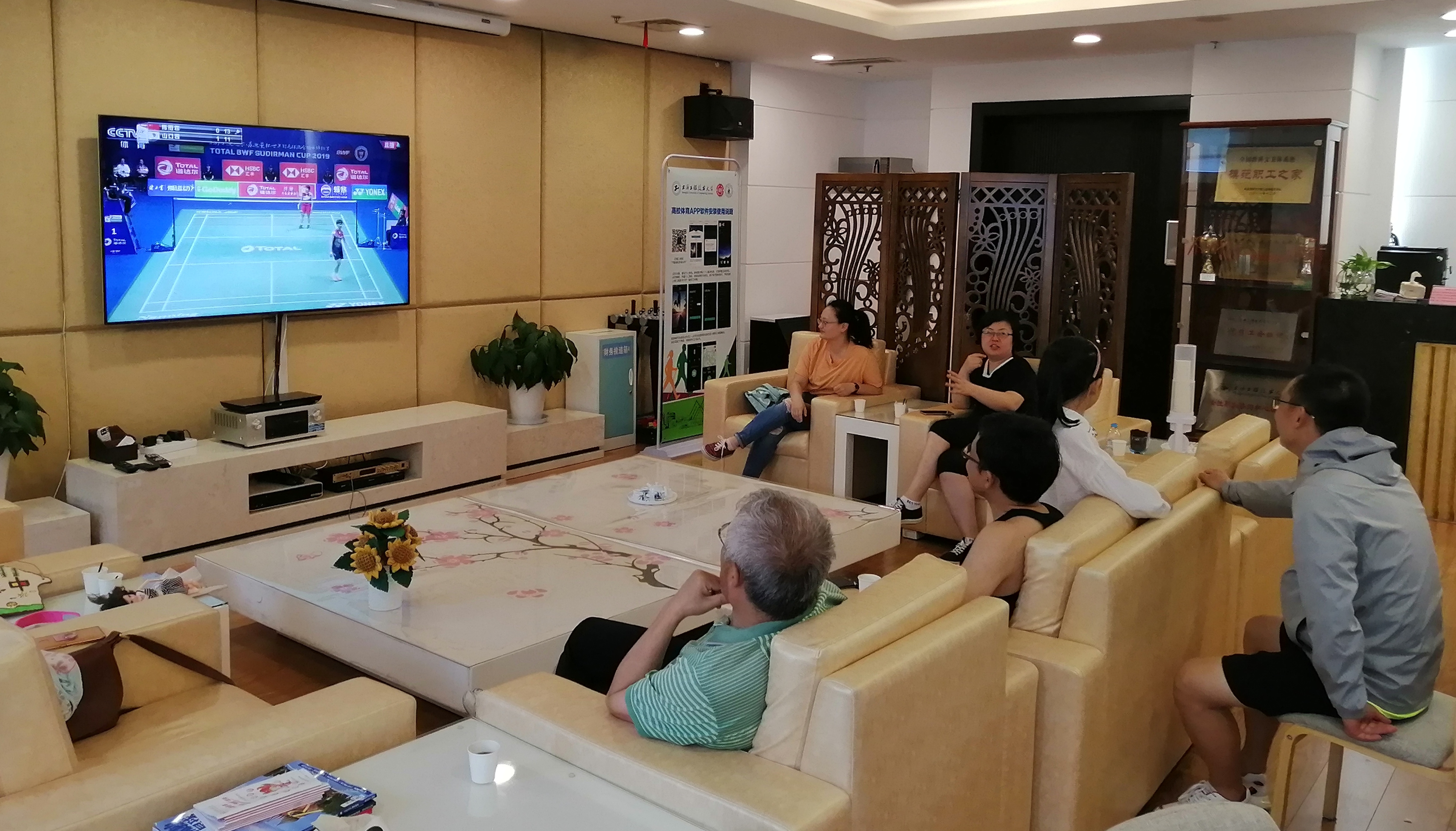 赛后队员们意犹未尽,趁2019年苏迪曼杯羽毛球赛白热化之际,自发观看中国队赛事直播,互相交流世界顶级运动员的技战术细节及观后心得。次日在校工会的支持下,协会会长组织会员们在教工之家观看了苏迪曼杯决赛直播,大家有幸见证了中国队以3:0的绝对优势完胜头号种子日本队,时隔四年重夺该项赛事冠军,也将中国的苏杯冠军数量提升到11个,刷新了苏杯历史新纪录。观看比赛时队员们情绪都很亢奋,爱国主义情感油然而生,纷纷表示要立足自身岗位,在工作中充分发扬中国队顽强拼搏,胜不骄、败不馁,积极进取、坚忍不拔的精神意志,为学校“新三步走”战略和国内一流的高水平现代化工程应用型特色大学目标的实现贡献更大的力量。