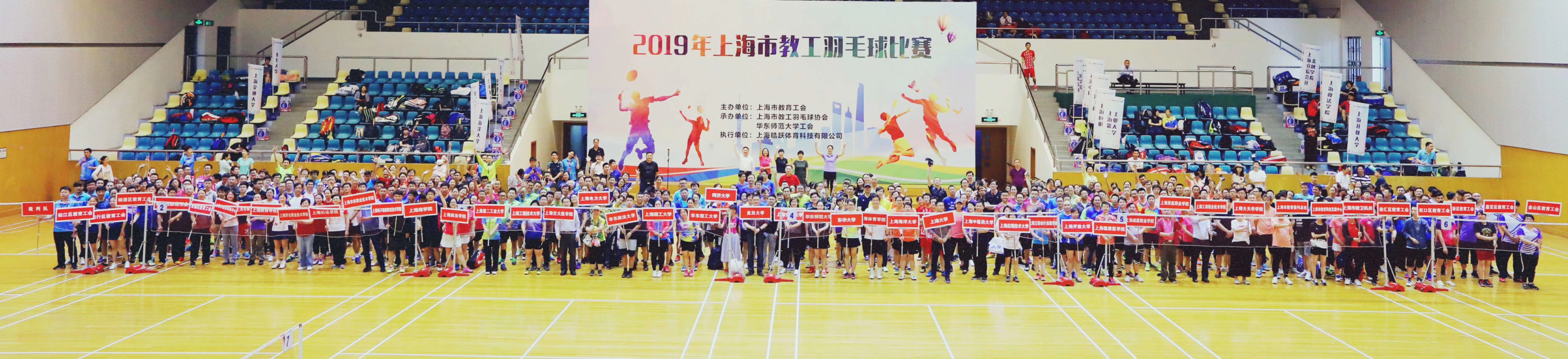 为促进教育系统各单位群众体育运动之间的交流,以球会友、共同学习、加深友谊、促进健康,中国教育工会上海市委员会于5月25日(周六)在华东师范大学体育馆举办了2019年上海市教工羽毛球赛。此次比赛由华东师范大学工会和上海市教工羽毛球协会共同承办,参赛队伍包括高校、区、直属相关单位,我校教工羽毛球协会代表学校应邀参加此次比赛。