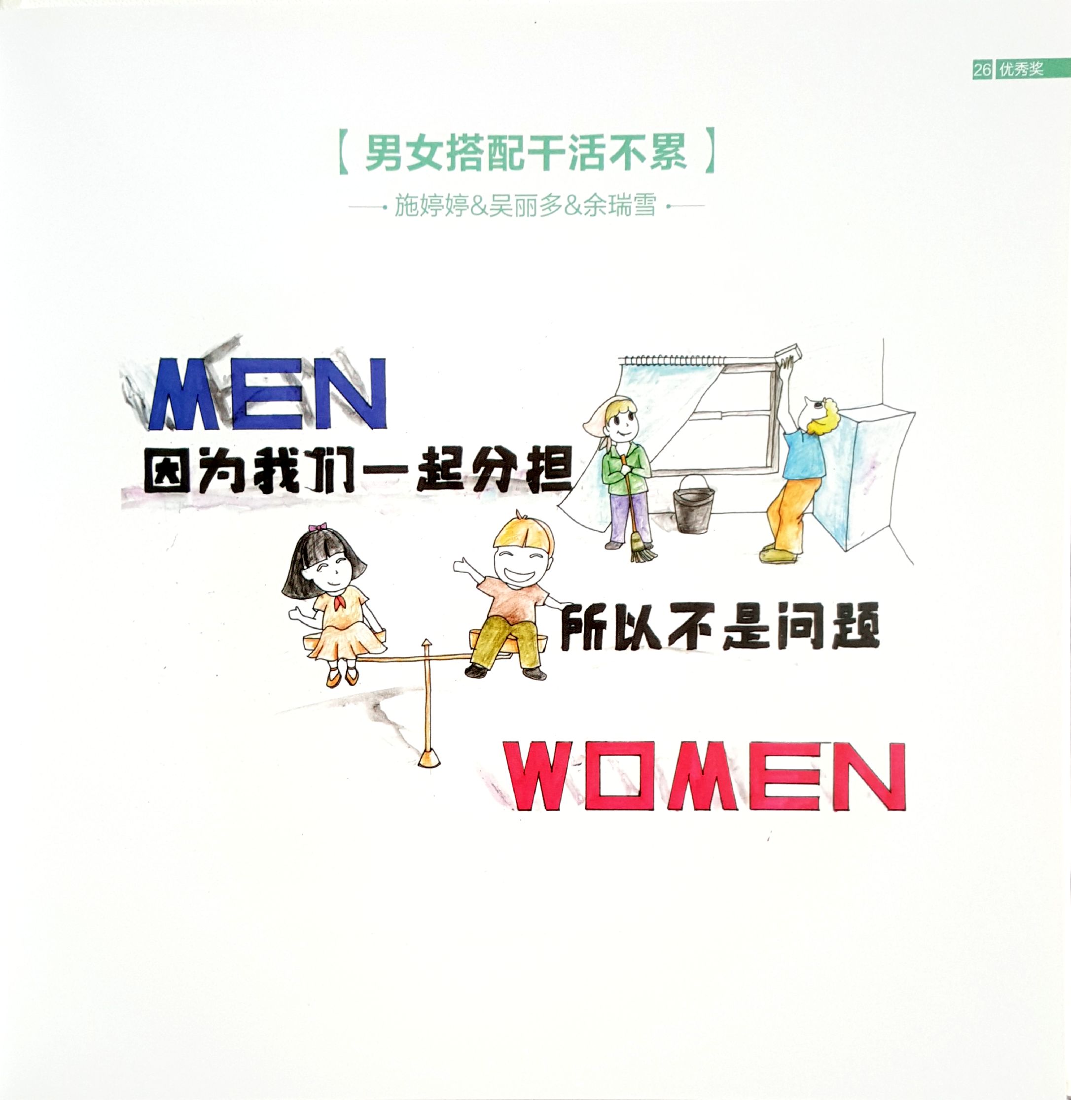 近日,从上海市妇联传来喜讯,在2015年纪念我国男女平等基本国策实施二十周年“男女平等涂鸦创作公益活动”中,由工会女职工委员会推荐上报的7幅学生作品从近500幅参赛作品中脱颖而出,任航荣获一等奖,沈弋弋和陈沁沁、韩雨童分别荣获二等奖,滕静、李雅璠分别荣获三等奖,施婷婷、吴丽多和余瑞雪、顾佳怡分别荣获优秀作品奖。工程大的青年学子用色彩与线条描绘了他们对男女平等的认识和理解,用新一代人的眼光和时尚的涂鸦方式传播男女平等的种子。