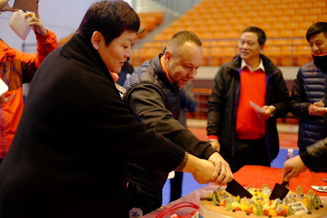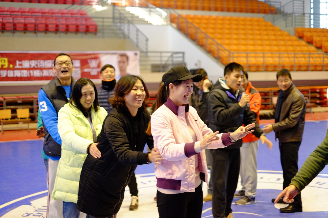 12月2日上午9:00,喜洋洋的音乐在体育馆一楼响起,体育部2016集体生日会暨全民健身活动在这里举行。第一个环节素质拓展,今天我们全体体育老师一起当起了小学生,在我们的素质拓展教练的带领下,做起了素质拓展游戏,破冰、乌鸦和乌贼、五毛一块,一个个紧凑、有趣的小游戏,让老师们不知不觉中放松了心情,全场时时暴起阵阵笑声。通过这些素质拓展游戏,拉近了大家的距离、活跃了活动的气氛,也有一定的心理教学的内容。在游戏休息间隙安排了抽奖环节,由体育部刘伟老师、谢敏老师给大家抽奖、并颁发奖品。